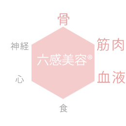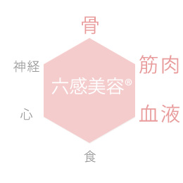 『身体は一つの集合体である』という考え方です。私は、『神経』『血液』『骨』『筋肉』『食』『心』の6つのポイントを整えていくことで、身体の機能を最大限に活かすことができると考え、それぞれの切り口を独自メソッドとして、さまざまなジャンルのプロの協力の元、『六感美容®』として確立させました。
